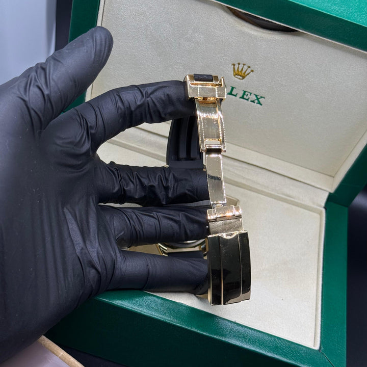 Command attention with the Rolex Submariner Datejust, a bold fusion of innovation and luxury. Featuring a rotating golden and black dial paired with a robust strap, this timepiece reflects the perfect balance of strength, elegance, and Rolex’s timeless craftsmanship.
